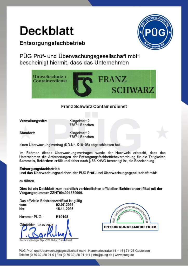 Schwarz Recycling ist Ihr Containerdienst in der Ortenau. Haben Sie Frage, oder benötigen Hilfe? Rufen Sie uns einfach an unter: Tel. 07843 7888 – wir sind gerne für Sie da!